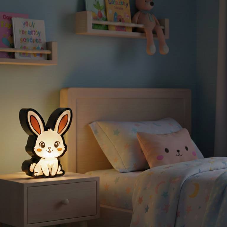 🐰 Éber álombarát: Füles testét úgy terveztük, hogy a fényforrás behelyezése után megnyugtató, lágy védőburkot vonjon a szoba köré. A fényt barátságosan szűri meg, így nem zavarja a mély alvást, de elég világosságot ad, hogy a legkisebb felfedezők is biztonságban érezzék magukat.