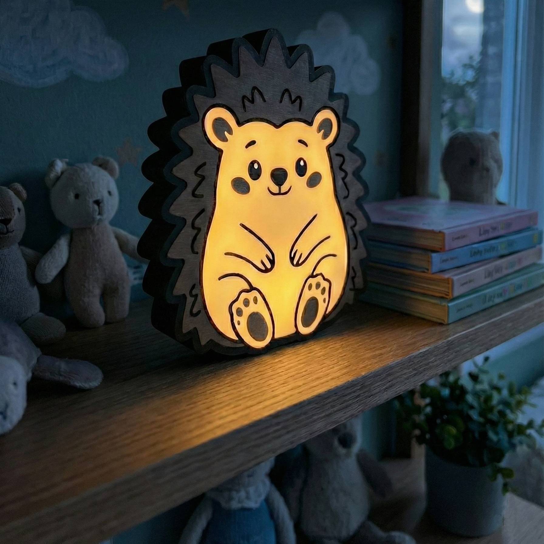 • A csomag tartalma: 3D nyomtatott süni figura + elemes LED szalag (Az összeszerelés pofonegyszerű: a LED szalag öntapadós, csak be kell ragasztanod a búra belsejébe. A 3 db AA elemet ne felejtsd el beszerezni!)